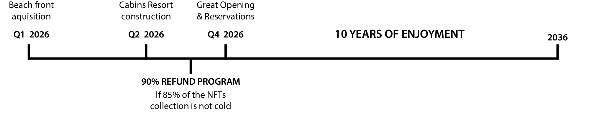 According to current Mexican law, the holder of the NFT must be at least 18 years old. Those under 18 must be accompanied by an adult over 18, who will be responsible for the terms and conditions of this agreement.Therefore, they agree to act respectfully and responsibly toward the resort, the environment, and ecosystems, both within and outside the resort area. Any aggressive, disrespectful, destructive, or illegal conduct may result in penalties such as expulsion from the resort, charges for destruction or damage to resort property or surrounding or protected ecosystems, temporary or permanent cancellation of NFT use, and civil or criminal lawsuits. Possession of the NFT and its use during your stay at the resort implies acceptance and signing of a liability waiver by charges for destruction or damage to resort property or surrounding or protected ecosystems, temporary or permanent cancellation of NFT use, and civil or criminal lawsuits. Possession of the NFT and its use during your stay at the resort implies acceptance and signing of a liability waiver by the NFT holder and their companions, releasing the resort and its employees from any liability and all types or form of legal claims, civil, criminal, or payment of costs and expenses that may be incurred due to incidents and accidents suered during your stay, including the use of the facilities, equipment, and services, insect bites or other interactions with the local ora and fauna, and any consequences that may arise during your visit or stay at the resort or its surroundings. The use of the facilities, services, equipment, and activities is the sole responsibility of the holder and/or their companions. Out of respect for the peace and quiet of the resort's guests and the local wildlife, pets are not allowed. The NFT holder and their companions agree to resolve any legal disputes under current Mexican law in the Mexican courts as determined by the specic case and situation.
