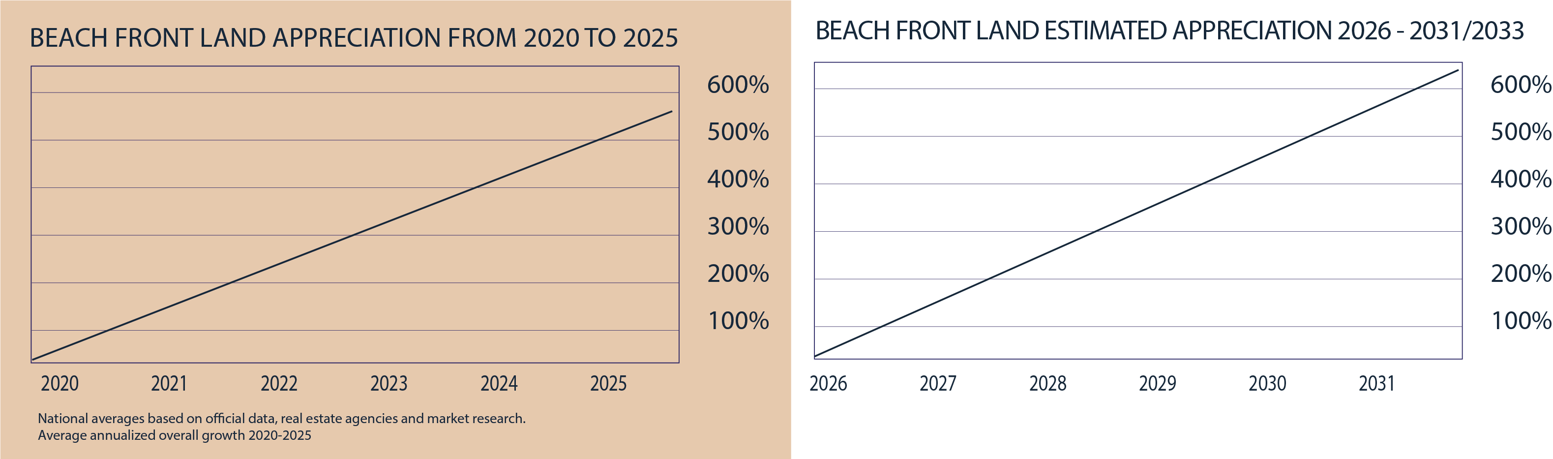 BEACH FRONT LAND APPRECIATION BY COUNTRY SINCE 2020